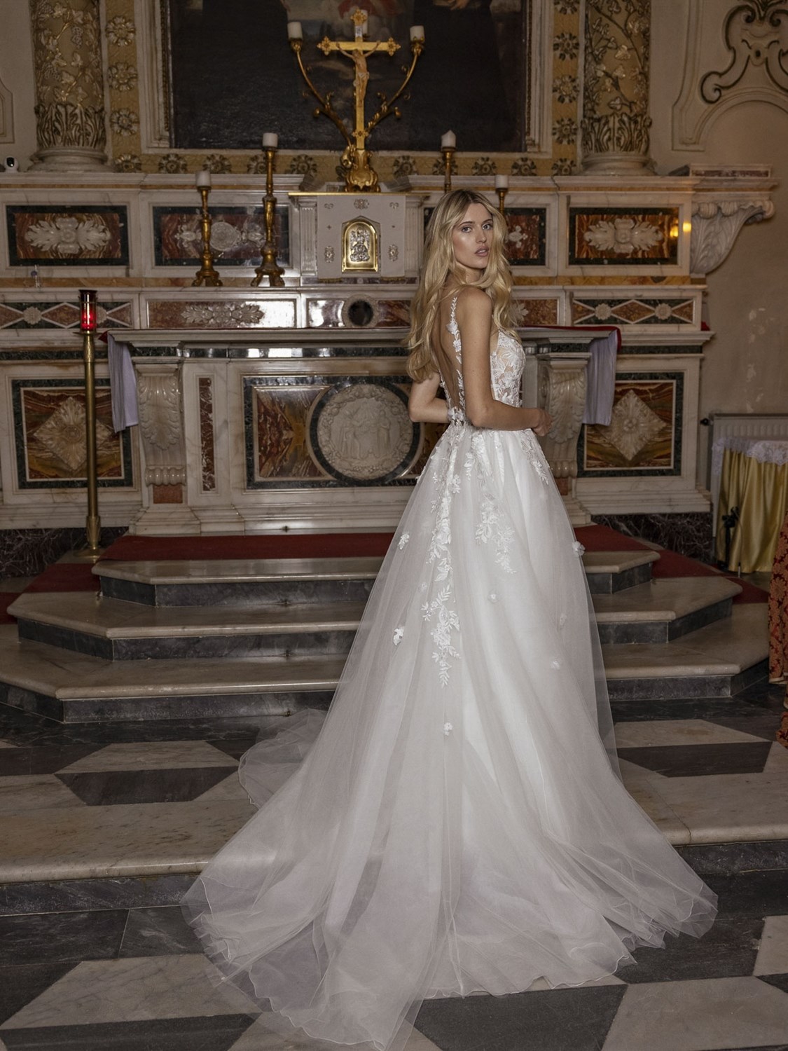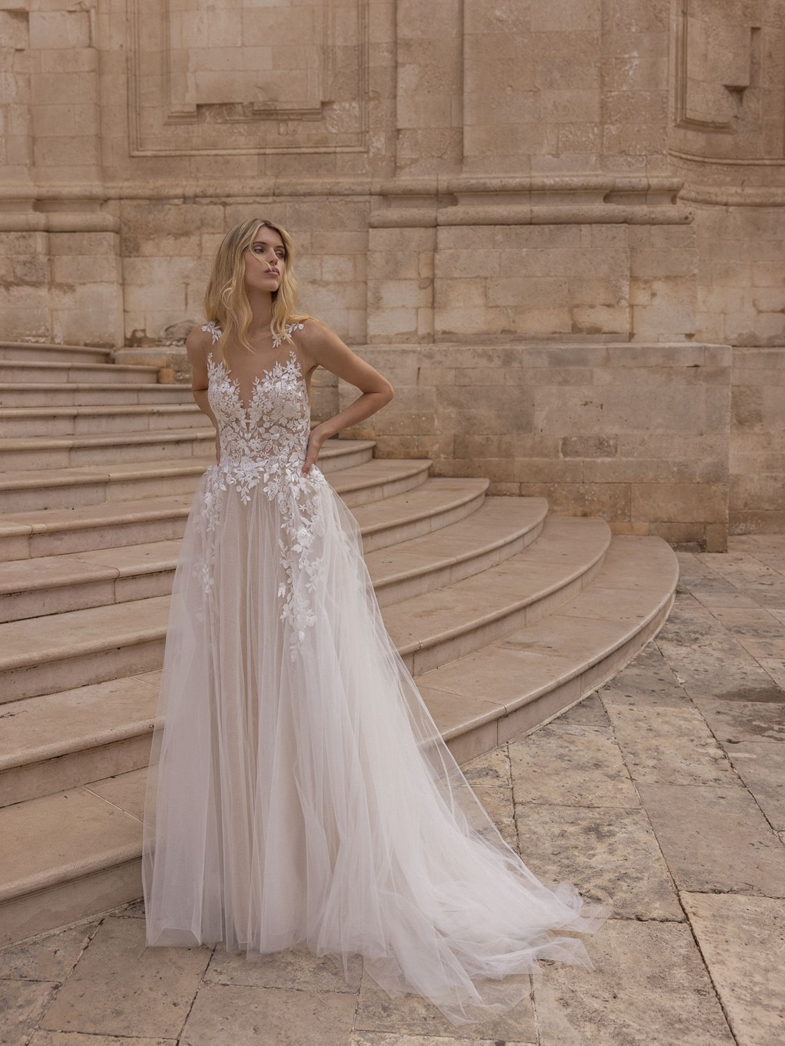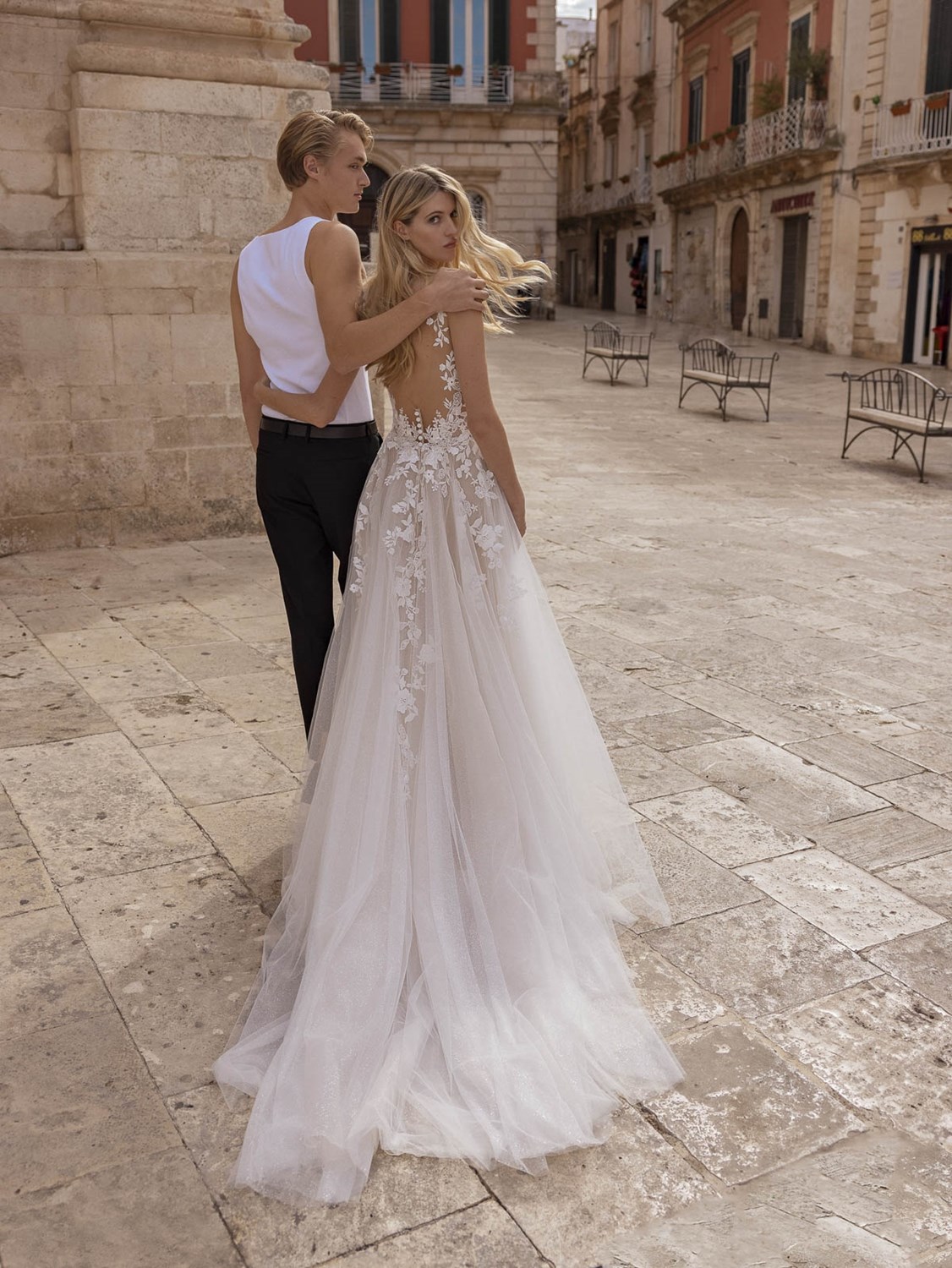 Vi befinder os i en drømmeverden af broderet satin, blonder og perlebesat tyl