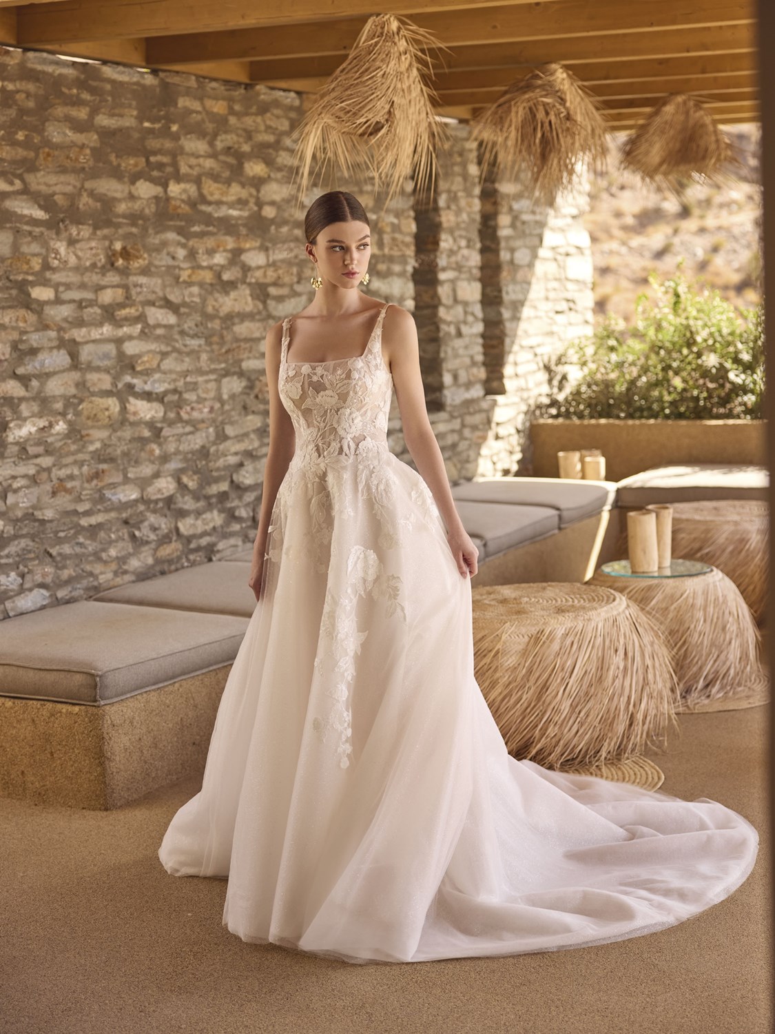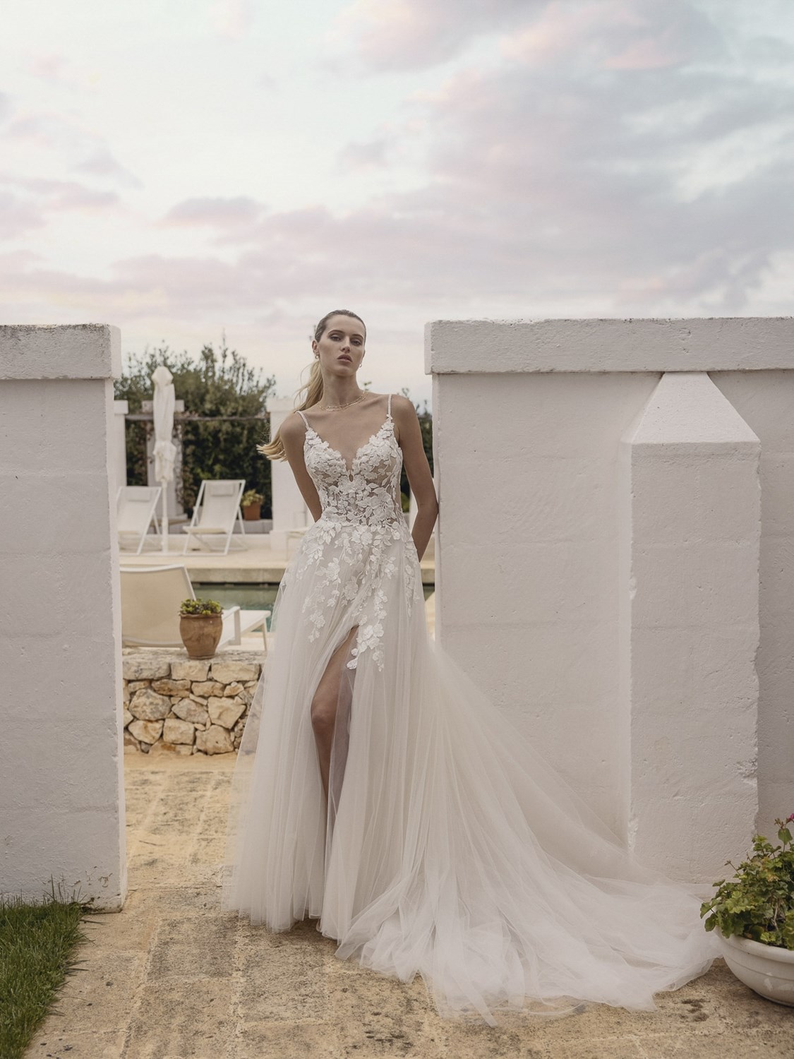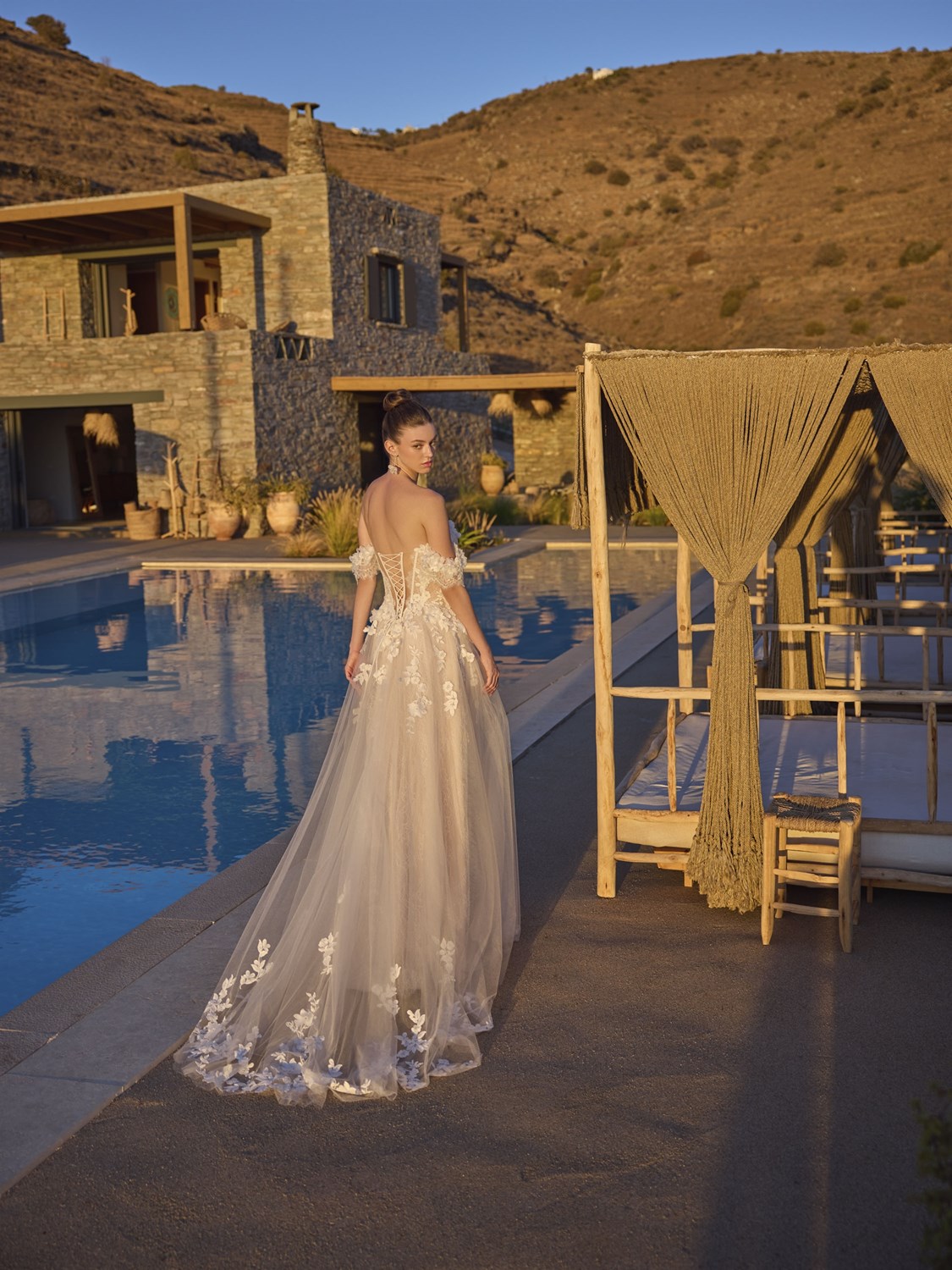 Vi befinder os i en drømmeverden af broderet satin, blonder og perlebesat tyl